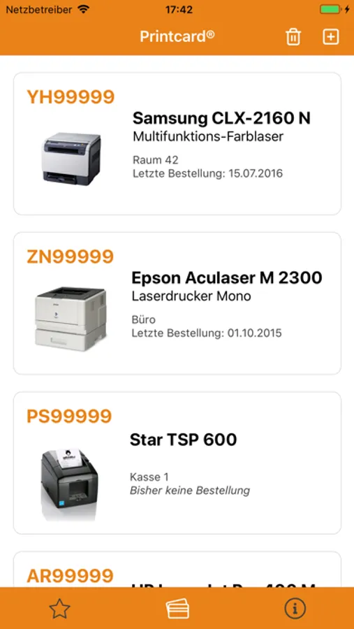 Speichern Sie Ihre 123Patrone-Printcard®-Codes, um schnell Zugriff auf Ihre Geräteinformationen und Patronennachbestellungen zu haben.