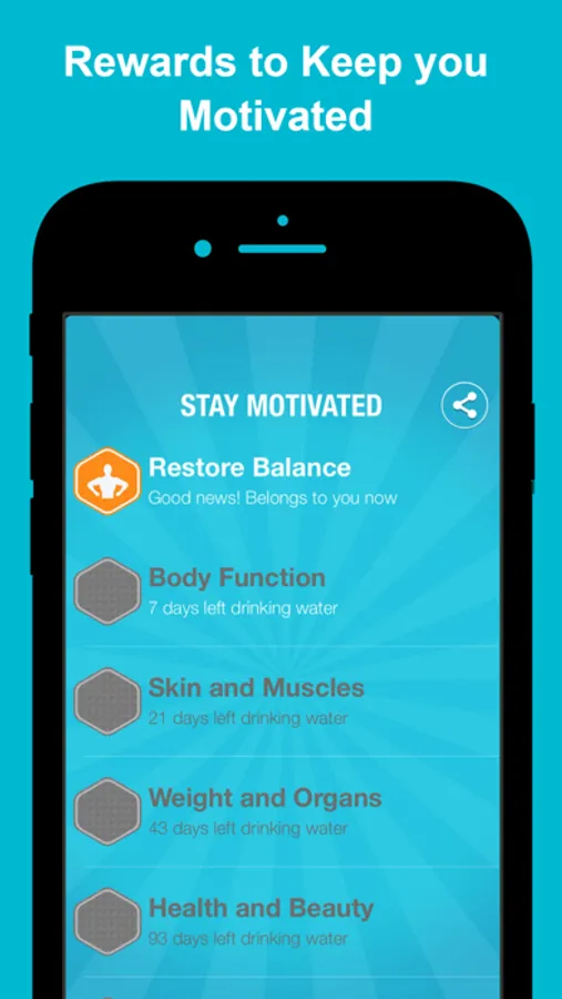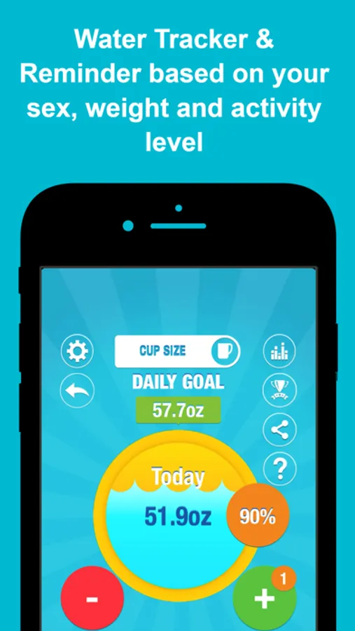 * Graphic display of your hydration level and daily consumption.
