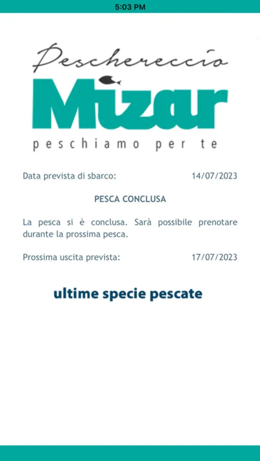 Applicazione per la prenotazione di pesce pescato fresco dal Peschereccio Mizar di Molfetta (BA)