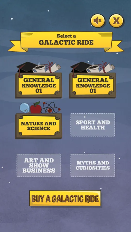 In the game you can unlock new and different “Galactic rides” all of them are incredible rides: Some topics: "General Knowledge"; "Nature and Science"; "Art and Show business", "Myths and Curiosities" and others.