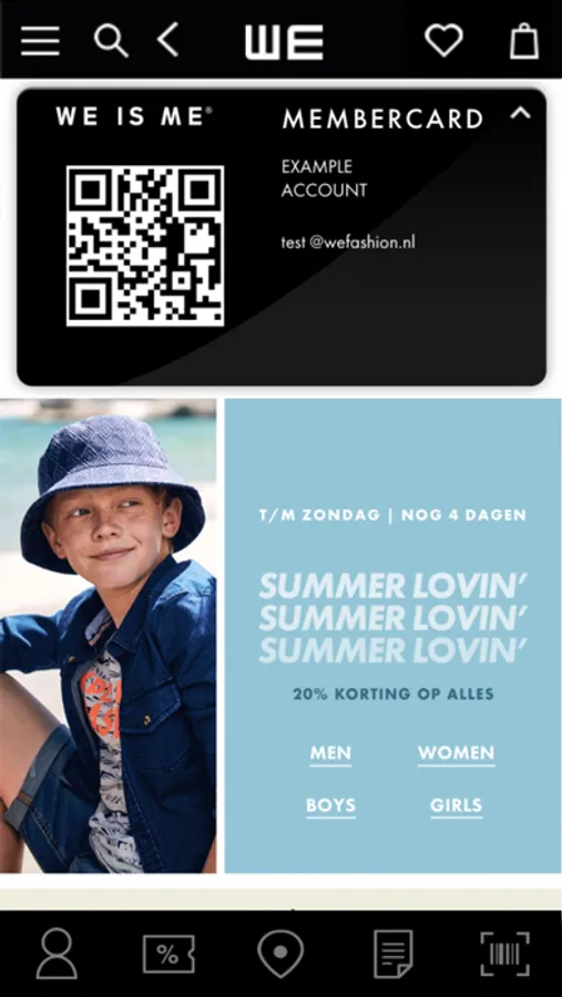 Registreer en word gratis en eenvoudig WE is ME member. Als member ontvang je persoonlijke aanbiedingen, heb je als eerste toegang tot de SALE en ontvang je uitnodigingen voor VIP shop events. Identificeer je in de WE stores met je digitale member ID, check je persoonlijke vouchers in ‘my coupons’, bewaar je favoriete kleding items in ‘loved items’ en sla je kledingmaten op in je profiel. Easy shopping!