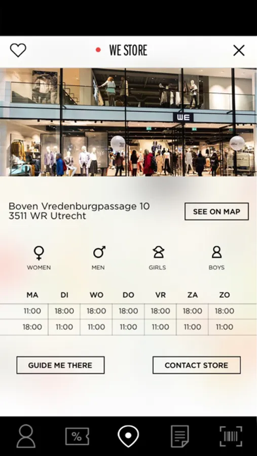 Vind een WE store bij jou in de buurt, bekijk de openingstijden, laat je naar de store leiden door de routeplanner of neem direct contact op. Save je favoriete WE store en laat je bestellingen hier gratis afleveren. Met de item locator scan je een kleding item in een WE store en check je de voorraad in de store en in de omgeving. Service comes first!