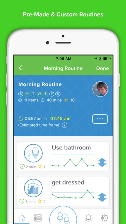 Parents set the start or end time for each routine and Brili will calculate the rest. If a task takes more or less time than originally stated, the subsequent activity durations are instantly changed to ensure routines are completed on time.