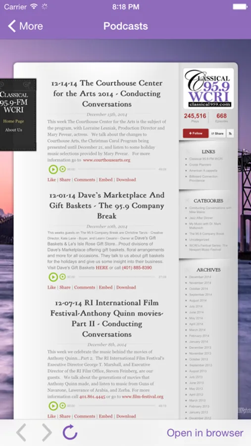 Listen to Southern RI's & southeastern CT's popular classical station with the WCRI App! The first choice for quality classical music & local arts programming! Get updates on local arts events, WCRI announcer bios, listen to station podcasts and more! Check out the four season themes that add another layer to your listening experience. WCRI's owned by the Judson Group: owners of Billboard Connection www.billboardsprovidence.com & Cruise Planners www.cruiseshoreandmore.com