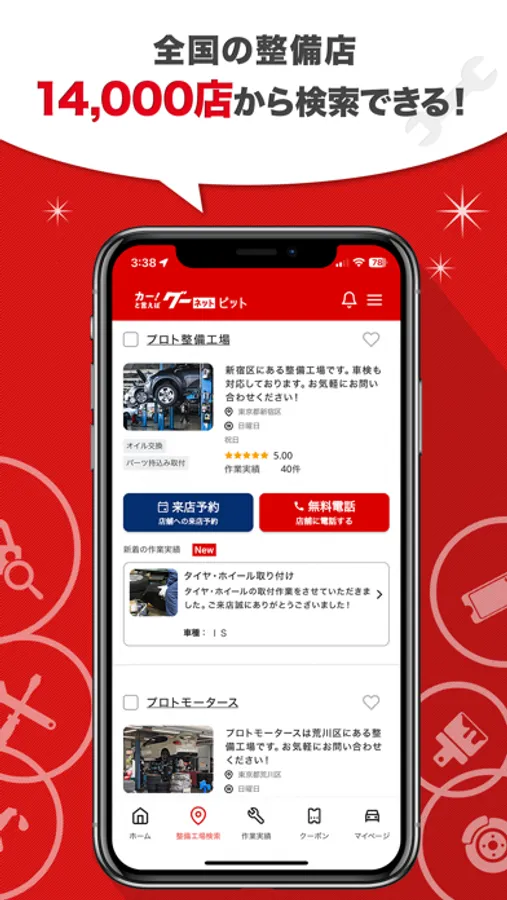 各整備工場の詳細では、「整備作業実績」や「レビュー」を見ることができ、安心してあなたにピッタリの整備工場を見つけることが出来ます!