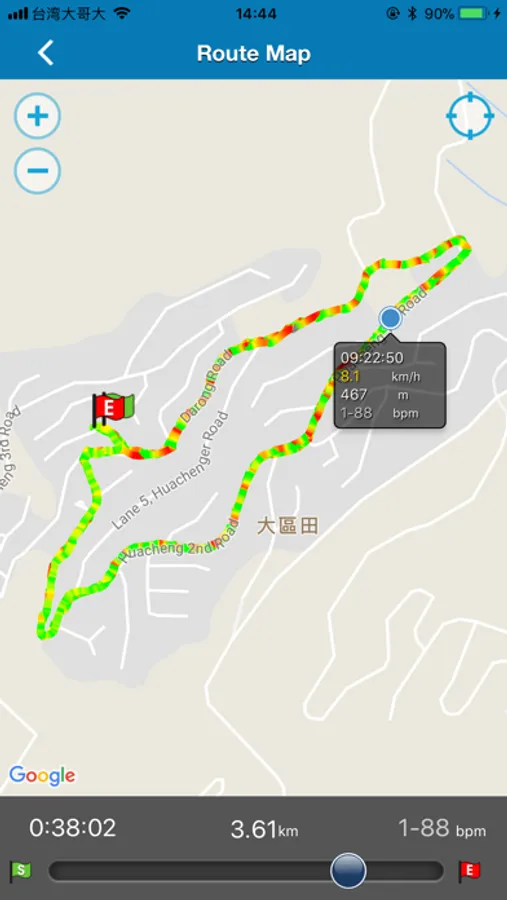 o Show speed and heart rate data of every logged point on the route map