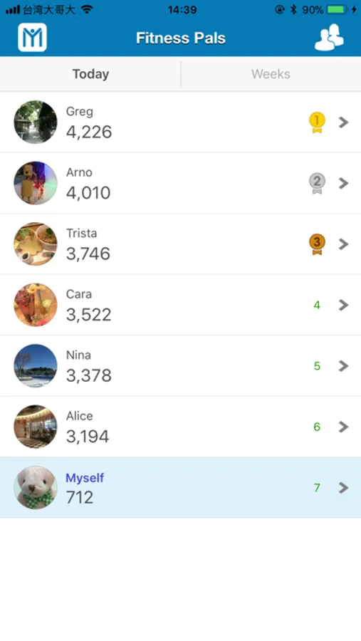 • Fitness Pals: invites friends to join you when you exercise, share encouragement quotes with each other in a real-time chat, and displays daily/weekly ranking of online sports contests