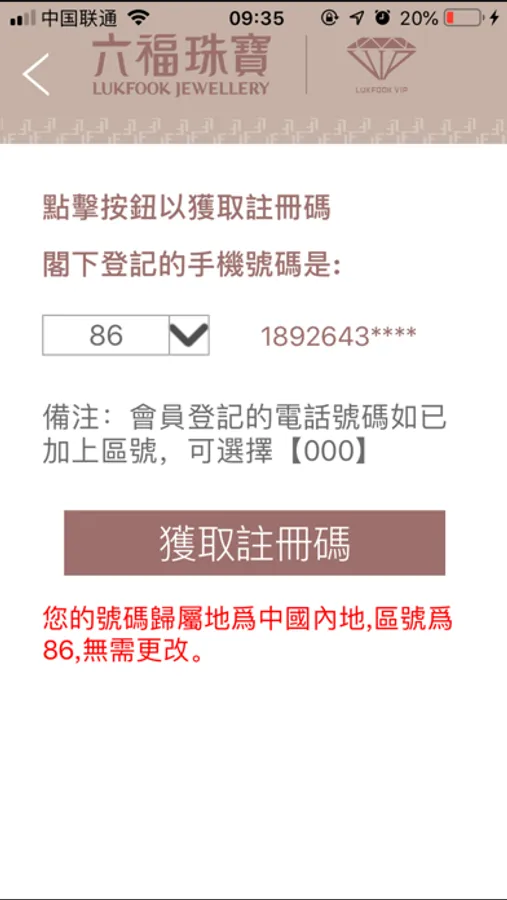 2.系統可以即時獲取網上註冊碼.使用註冊碼才能繼續獲得六福集團市場推廣中的各項優惠.