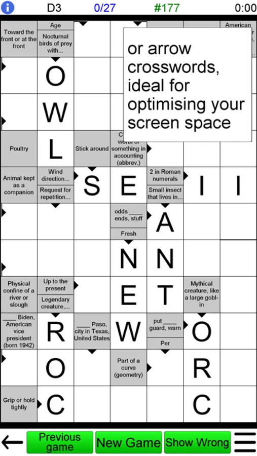 • You can choose from three different types of crossword grid: British, Barred and Arrow