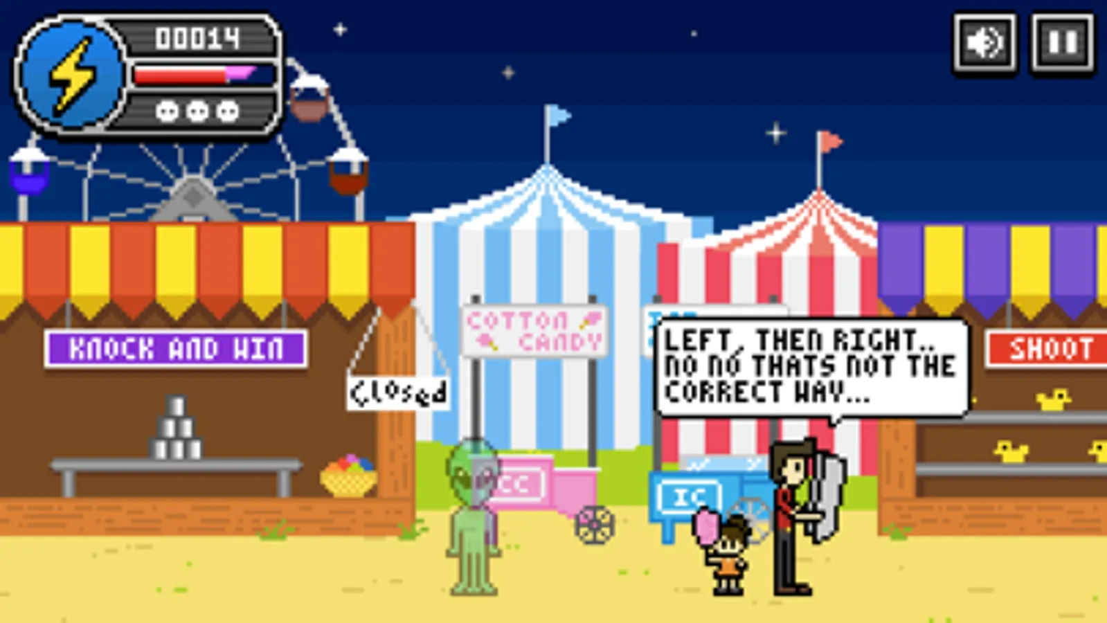 Zie Invades Earth is a simple one button minigame. Zie, the alien, has arrived on Earth with the intention of stealing from young earthlings, all those things that they hold dear, including candy, balloons etc. Can you help him in his mission?