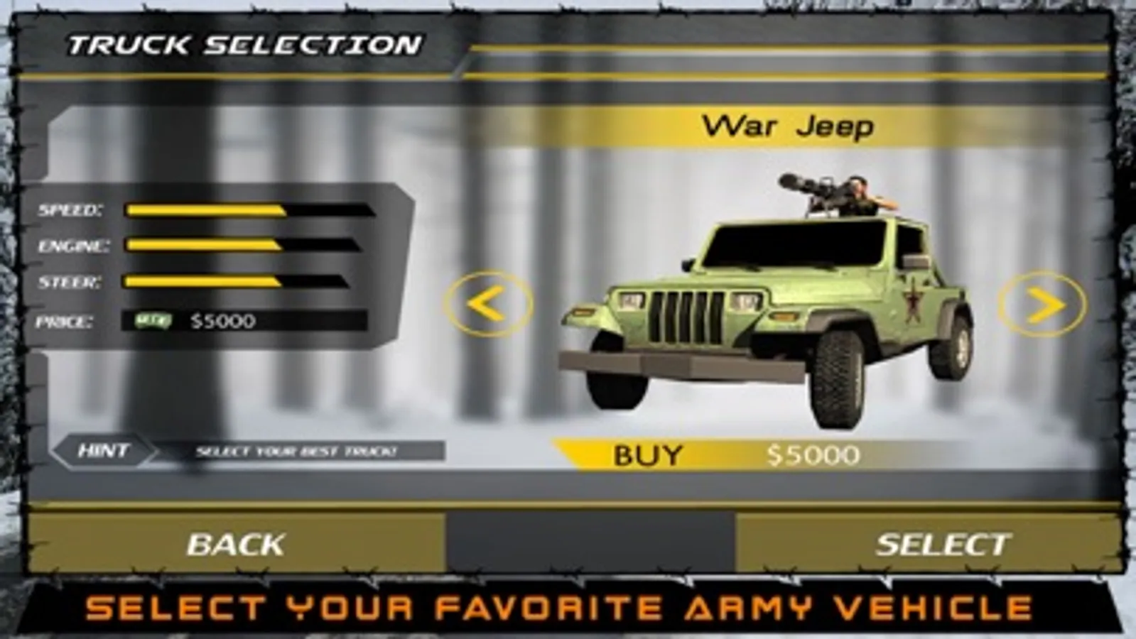• 4 military trucks to select from.