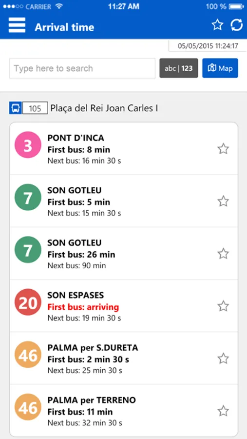 * Get bus arrival times exactly as in the EMT Palma app, but now also without knowing the bus stop number: choose your bus stop directly on the map; search directly by stop number, seeing the matches as you type; use the new text search engine for locating stops by street name. You can also get the bus arrival time from other screens of the app such as line information.