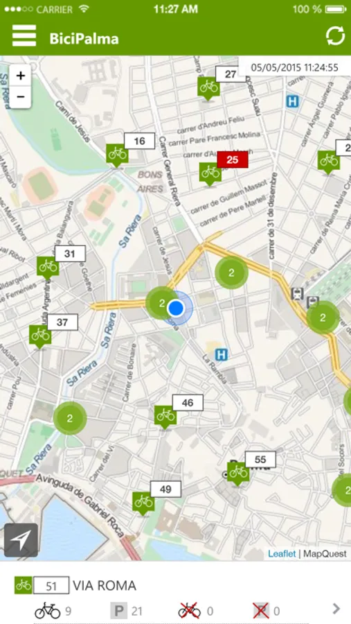 * Go to a BiciPalma bike station knowing in advance the number of available bikes and open anchor points, as well as any unusable ones.