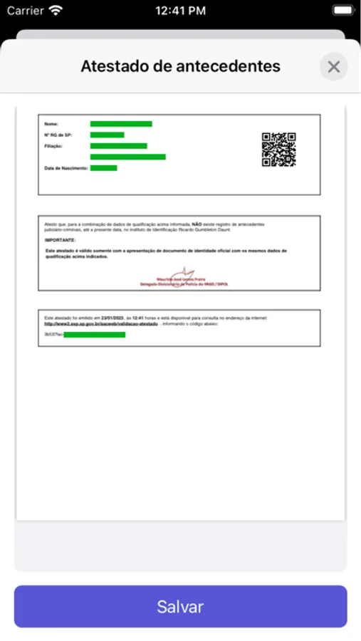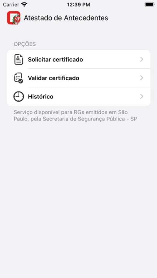 Com este aplicativo da Secretaria de Segurança Pública do Estado de São Paulo (SSP-SP), cidadãos com RG do estado de São Paulo podem emitir um Atestado de Antecedentes Criminais através do celular, bem como validar a autenticidade de um Atestado já emitido.