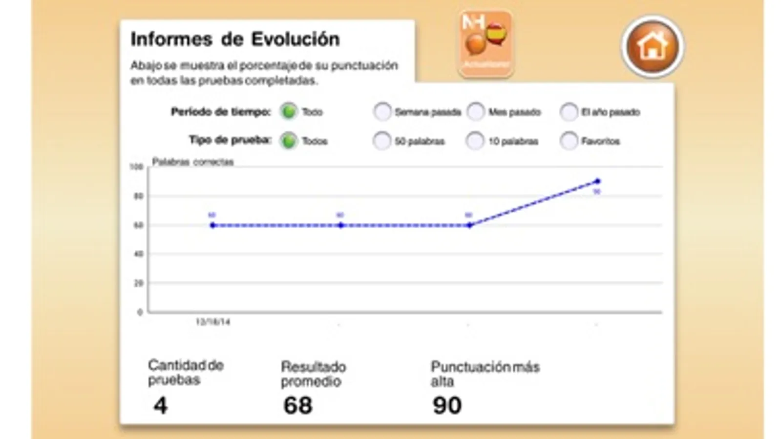 Informes de Progreso: Resultados por tipo de prueba o período de tiempo