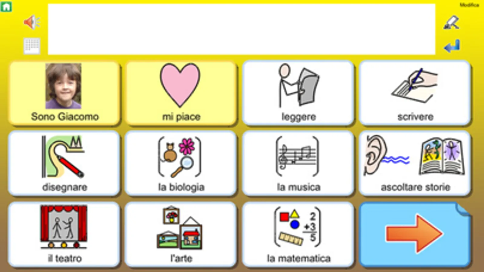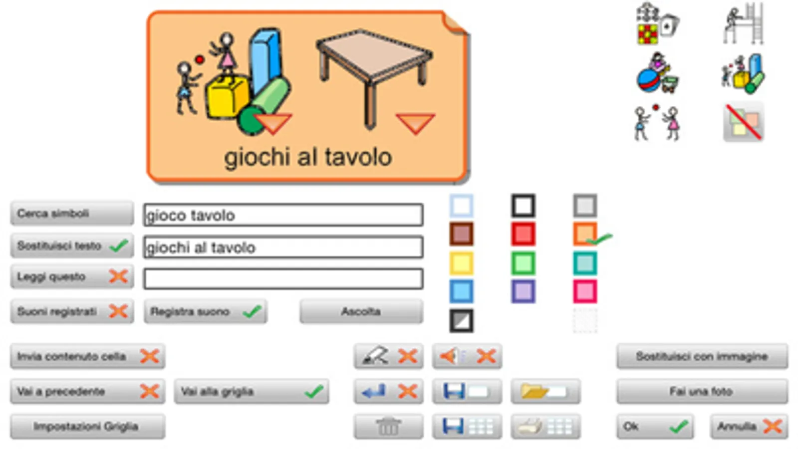 Con Widgit Go è possibile creare e modificare attività avendo accesso alla libreria dei simboli Widgit (oltre 14.000 simboli). All'interno delle Griglie possono essere utilizzate anche immagini e/o foto al posto dei simboli.