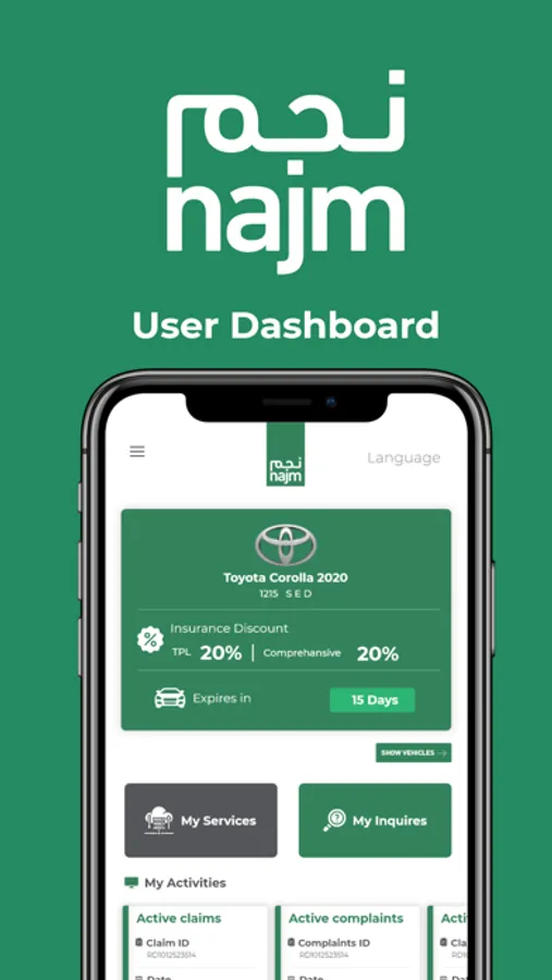Najm for insurance services provides a smartphone application “Najm” which enable drivers/insurance Co. clients to take advantage of the following services: