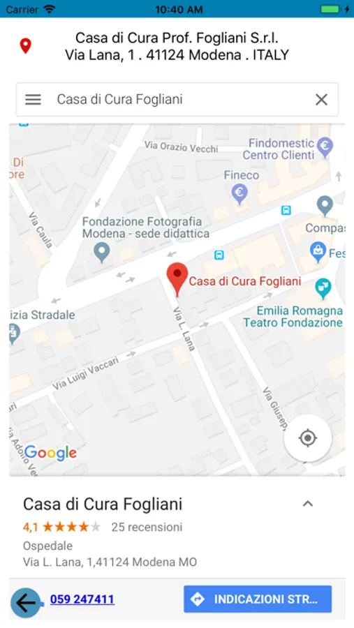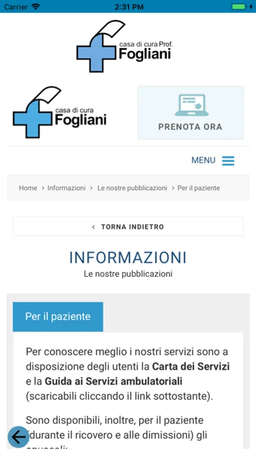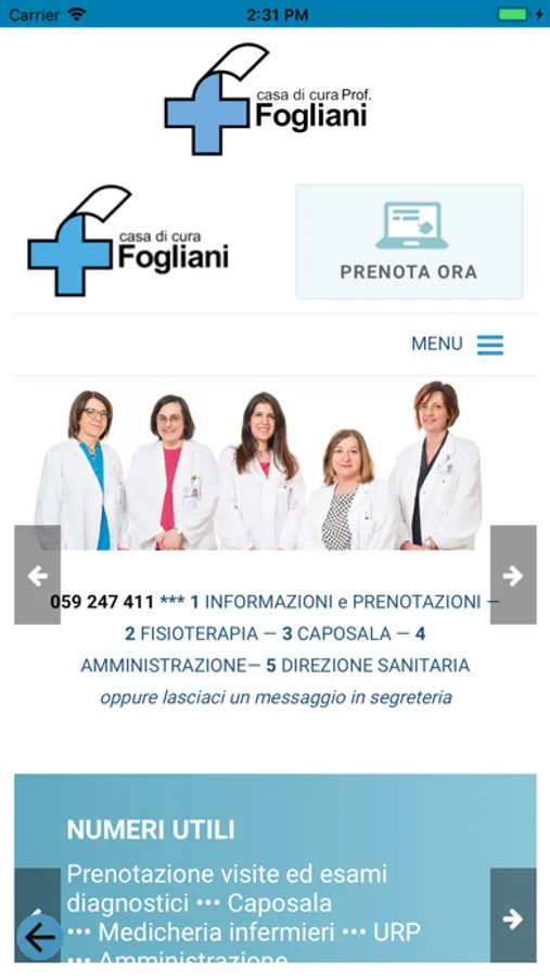 L'Ospedale Privato Accreditato "Casa di Cura Prof. Fogliani" esercita attività di diagnosi e cura erogando prestazioni programmate chirurgiche, mediche e specialistiche ambulatoriali nelle discipline ospedaliere e nelle branche specialistiche accreditate.