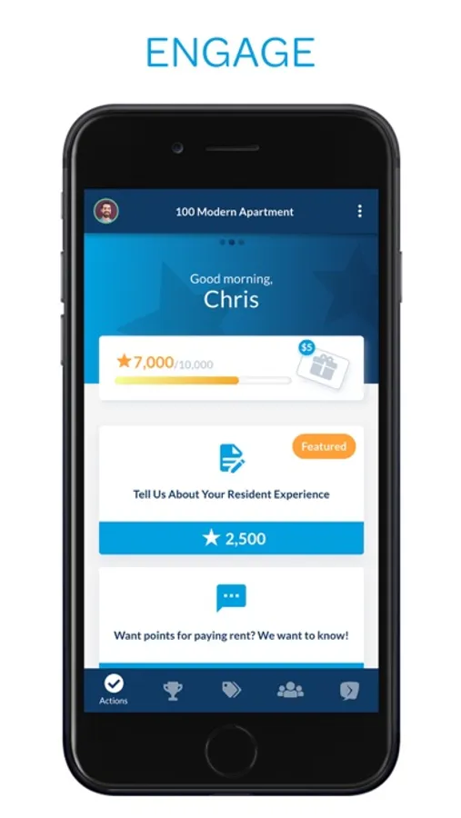 Actions include things you’re already doing like sharing about your apartment on social media, referring friends, renewing your lease, filling out surveys, sharing feedback…even paying rent online.