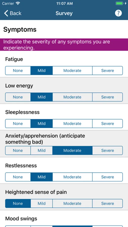 • Track your progress and symptoms by filling in the daily journal with its sliders and buttons and watch your data transform into easy-to-read charts