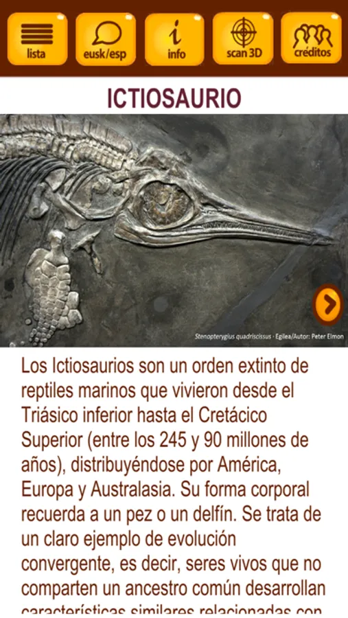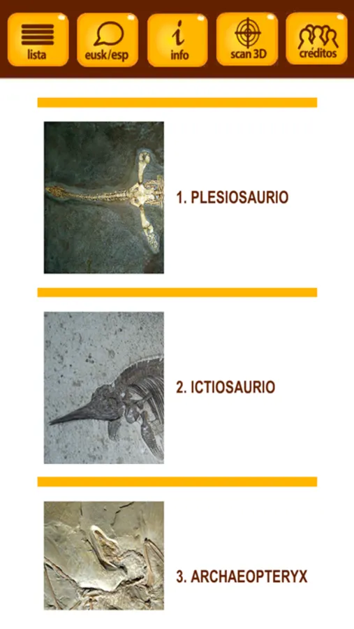 Es una aplicación que muestra información de fósiles que pueden encontrarse en el Museo de Ciencias Naturales de Álava, utilizando realidad aumentada para ver cómo eran estos animales en 3D.