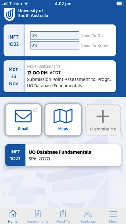 The UniSA App allows you to connect to a range of services and resources relevant to your study at UniSA. Find out more about your courses, access your timetable, orientate yourself around campus, access useful apps, find a PC, keep in touch with what's going on, provide feedback and make suggestions on how UniSA can improve its services and facilities.