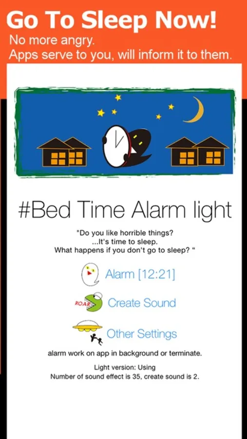 Bed Time Alarm, you can use 55 types of sound effects and create 50 alarm sound. of course no ads!