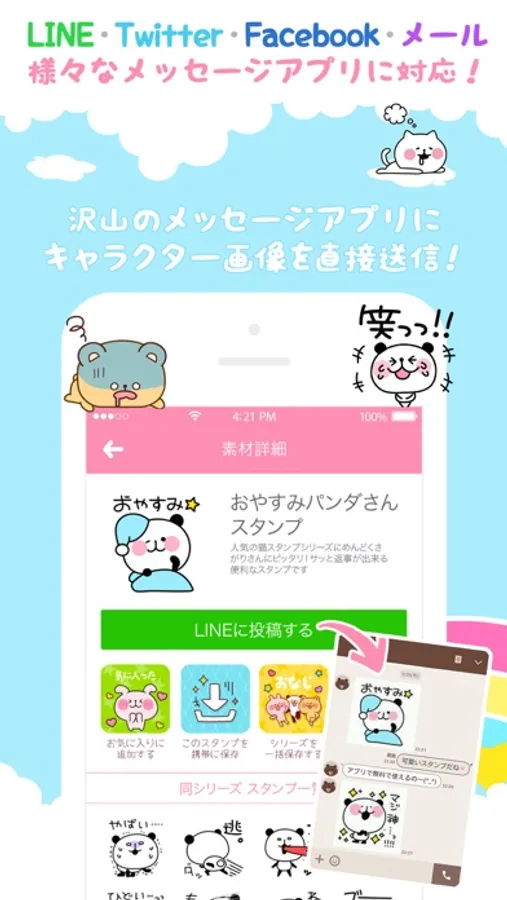 スタンプ・デコメ素材詳細ページから、送信時に使うアプリを選択するだけ!