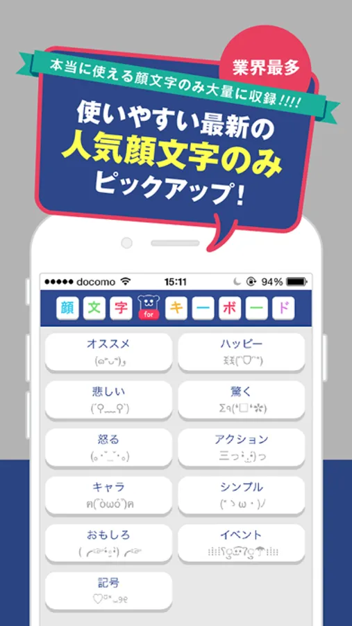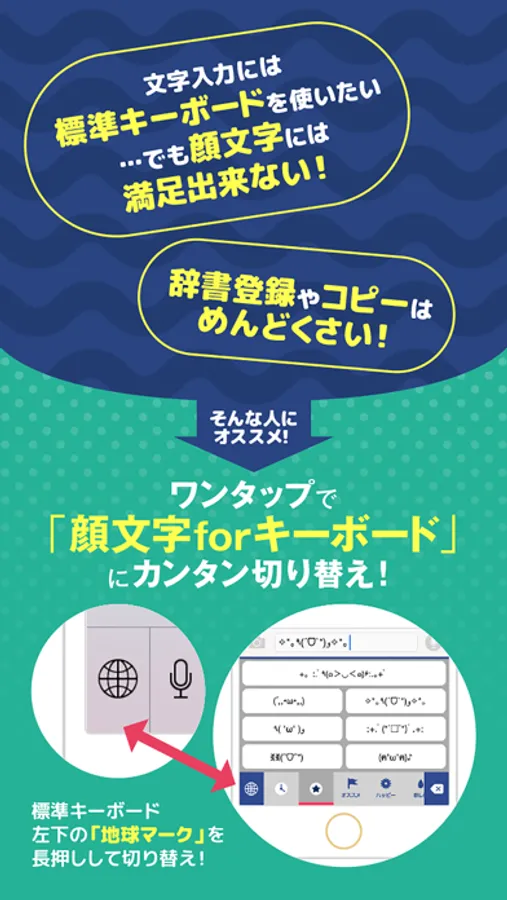 ※ 「顔文字forキーボード」はiOS8向けのアプリです ※