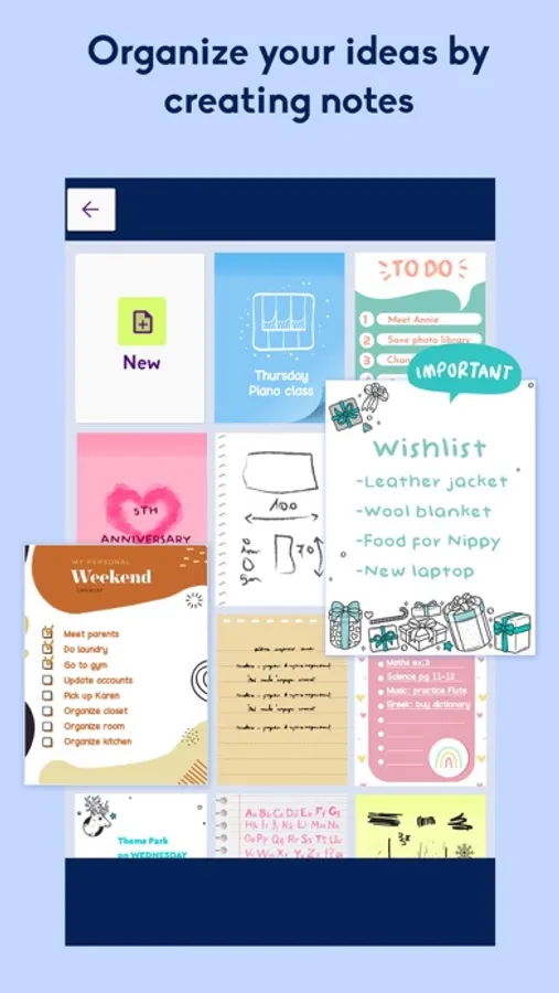 • Lots of backgrounds to write on: notebook, worn, notes... even some already!