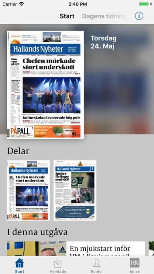 Om du redan har en pappers- eller e-tidningsprenumeration på Hallands Nyheter så behöver du bara logga in i appen. Har du inget digitalt konto sedan innan, skapar du ett på hn.se/skapakonto.