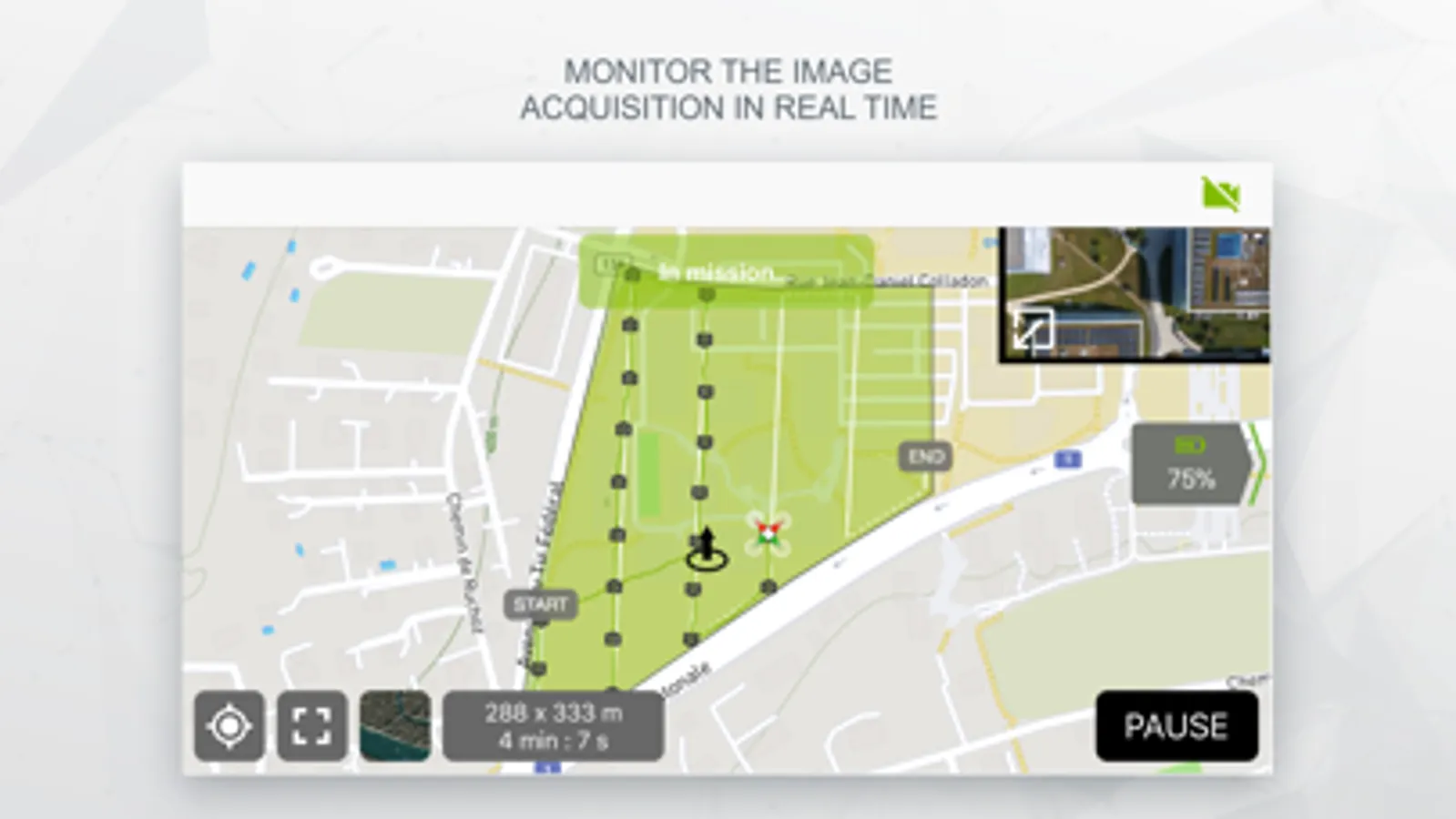 • Drone telemetry and camera live feed during the image acquisition