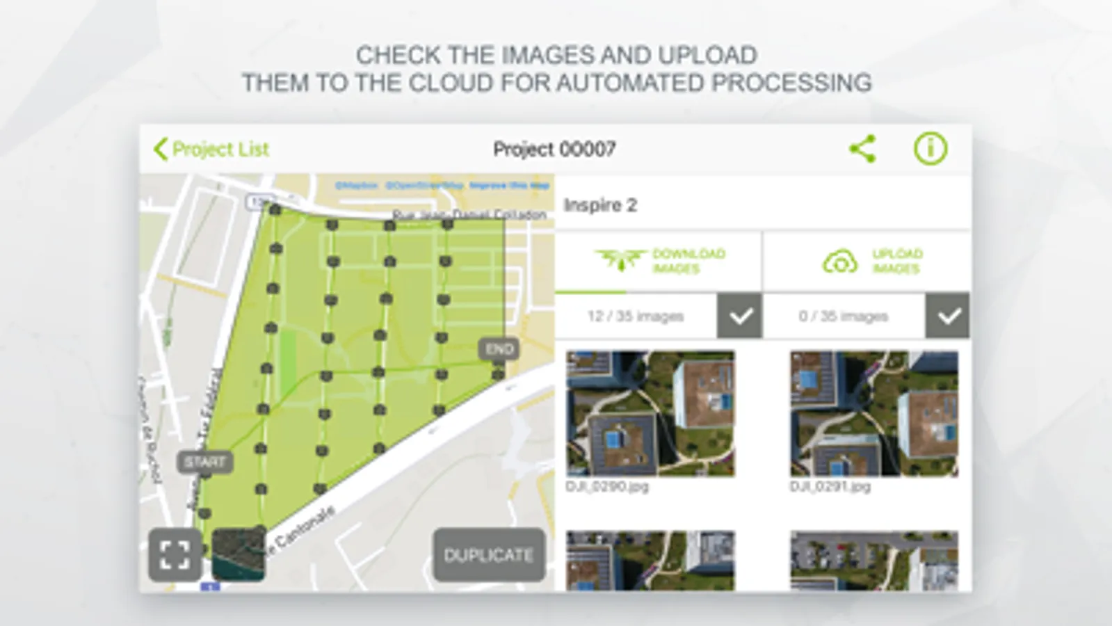 • Upload images directly from the device to Pix4D software in the cloud for processing