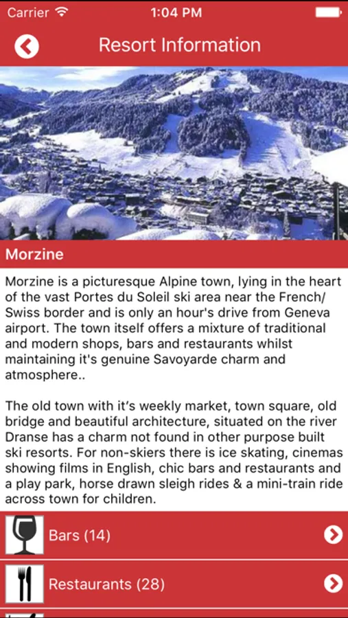 The App also contains inside information about the resort to ensure that you make the most of your time in Morzine with restaurant, bar, ski hire, ski school and resort information.