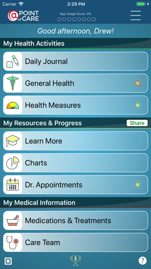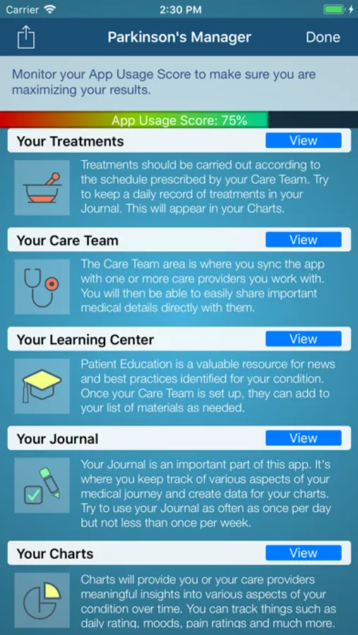 When you are living with Parkinson's Disease, the Parkinson's Disease Manager can help you manage the symptoms that affect you every day. Studies show that people with chronic diseases can positively affect their lives by using @Point of Care apps to track pain, medications, and more—giving a sense of control over their conditions.