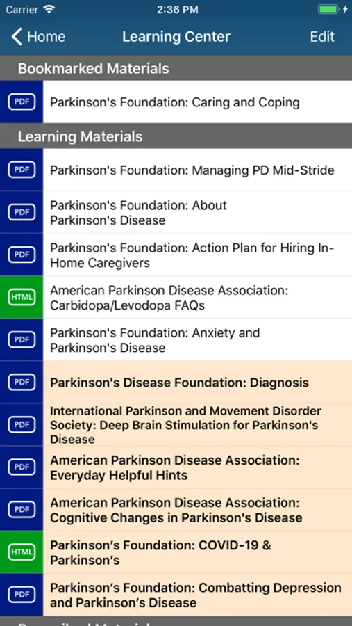 • Stay up-to-date with the latest information on Parkinson's Disease when you access the “Learn More” section