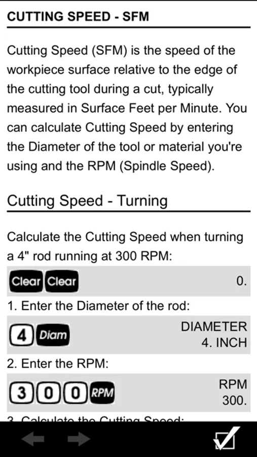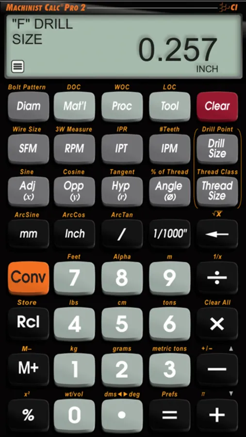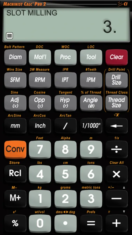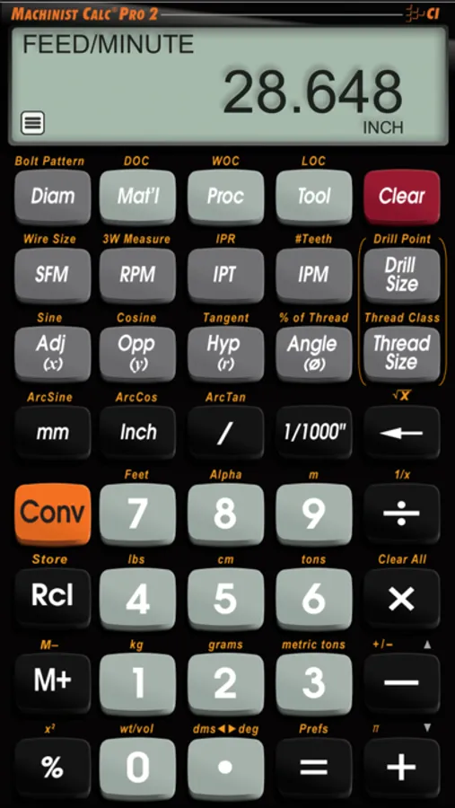 • NEW - Machining-specific keys to enter or calculate Surface Feet per Minute (SFM), Inches per Tooth (IPT), Inches per Minute (IPM), Inches per Revolution (IPR), # of Teeth, Depth of Cut (DOC), Width of Cut (WOC) and Length of Cut (LOC)
