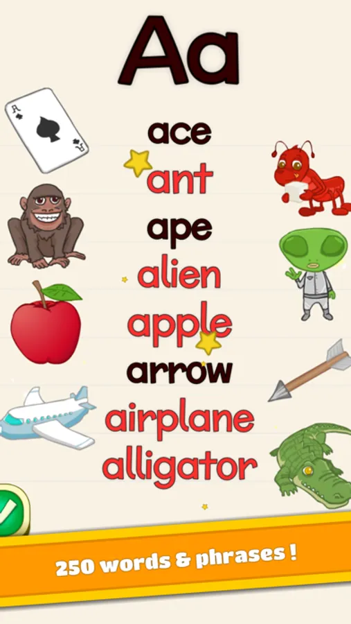 As you master easier words and learn to match them with their meaning, you will receive more challenging vocabulary.