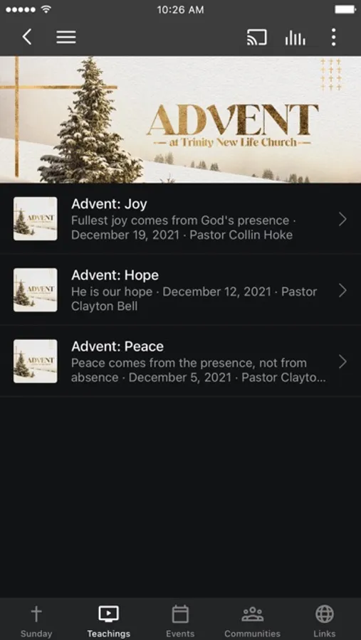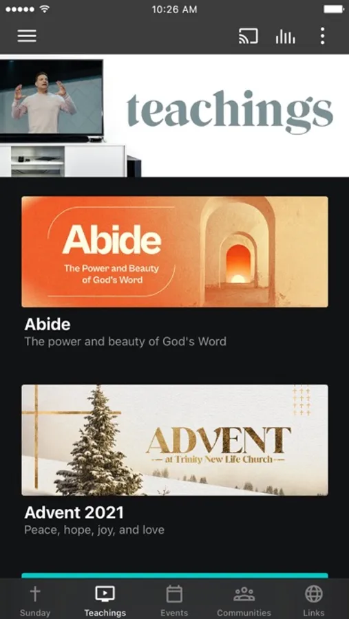 The Trinity New Life Church app was developed with the Subsplash App Platform.