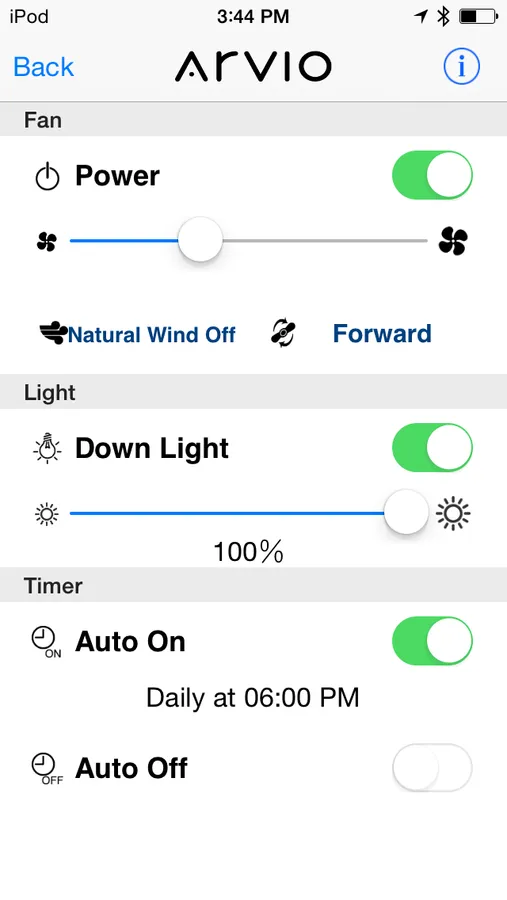 Arvio Fan Remote is an application that can be used to control selected Arvio ceiling fans. With it, you can select speed, adjust light intensity and set timer through your smart phone or tablet device.