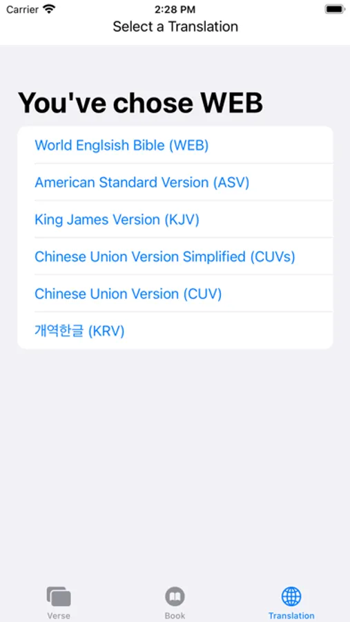 - Chinese Union Version (CUV, traditional and simplified)