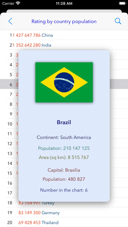 Разполагате с някои допълнителни справки като например коя подред е дадена държава според площта на територията й, според населението, брутния вътрешен продукт и други.