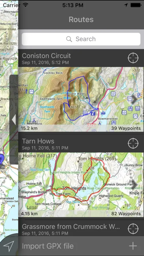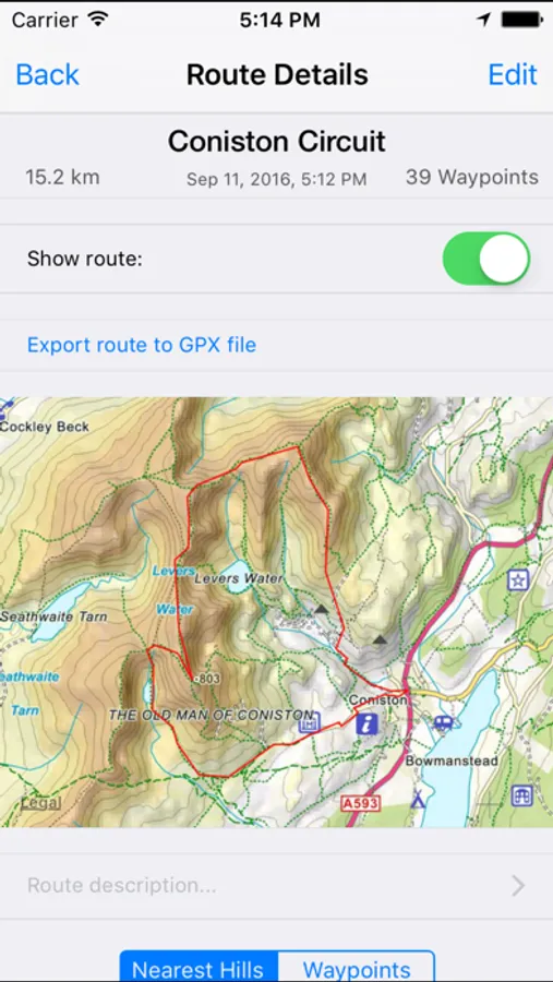 Lake District Maps provides a useful offline (no mobile signal required) mapping reference and navigation aid whilst travelling throughout the Lake District by footpath, road, rail, canal, lake and river. Intuitive route and waypoint management features are implemented enabling creation, modification, deletion, import and export of routes. A powerful offline search facility can locate places, roads, post codes and hills within the region. Worldwide online Apple Maps (Standard, Satellite and Hybrid) with map features that users are used to are available on both offline and online maps as well as providing 3D buildings on Apple maps (where available).