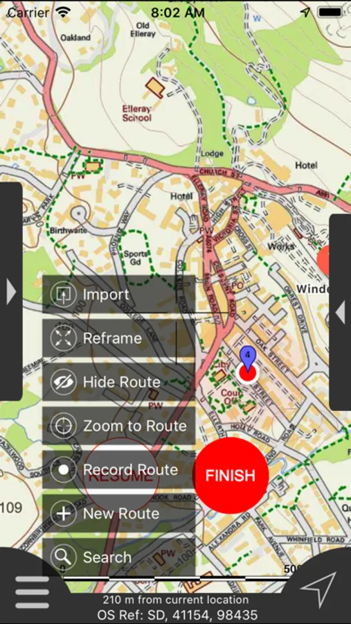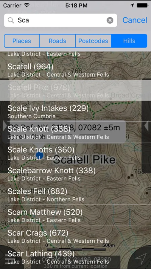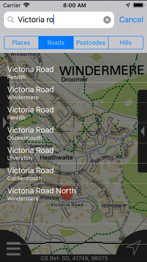 - Offline search functionality with searchable locations (places, roads, post codes and hills). (For the place search a location's latitude and longitude is accurate to 0.1 of a minute of the centre point of the 1x1 km National Grid square in which the name falls)