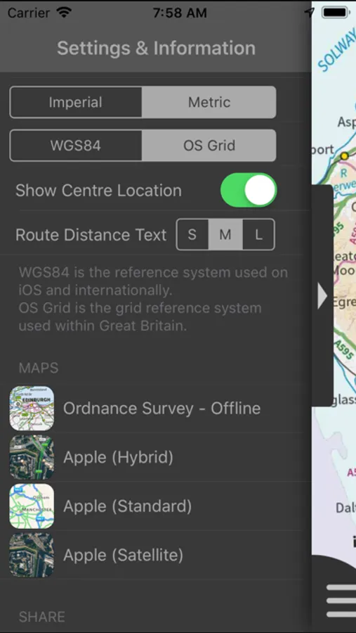 - Display of current GPS position as OS Grid Reference or WGS84 latitude and longitude