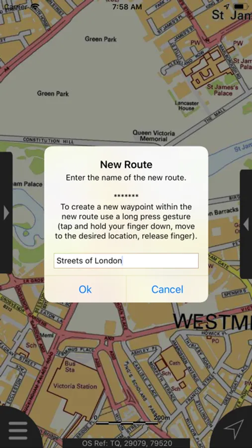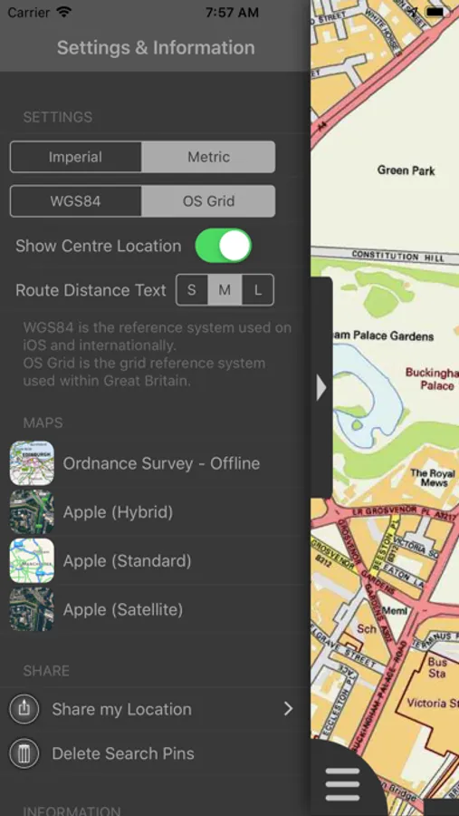 - Display of current GPS position as OS Grid Reference or WGS84 latitude and longitude