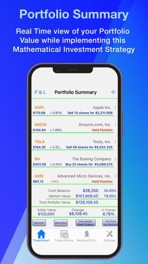 With TradeSmart you will know how much and when to buy, sell, or when to hold your position. It reduces the risk by continuously protecting the equity value as well as the cash reserve by selling stocks at a profit, and buying them at lower prices.