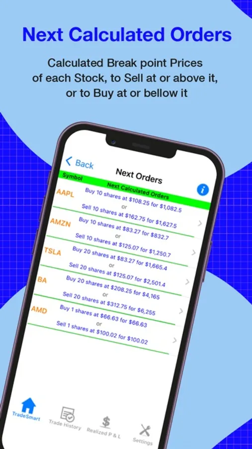 With TradeSmart you will receive calculated market orders ,that include the price and quantity of shares to sell, and also the price and the amount of shares to buy.