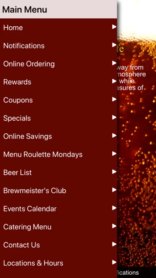 • Event Information like trivia, live music, happy hour and the Brewmeister Challenge