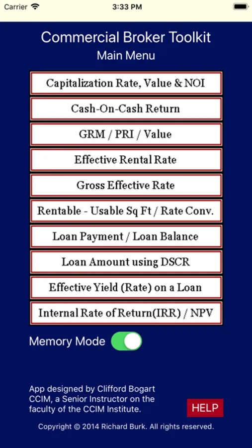App designed by Clifford Bogart CCIM, a Senior Instructor on the faculty of the CCIM Institute.